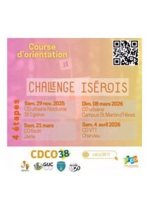 Le Challenge isérois organisé sous l’égide du CDCO 38 a pour vocation d’offrir des compétitions de Course d’Orientation de proximité. Les cinq étapes du Challenge isérois organisées par les cinq clubs isérois se déroulent de septembre de l’année en cours au mois de février de l’année suivante. Chaque étape fait la part belle aux débutants et à tous ceux qui veulent découvrir la Course d’Orientation.